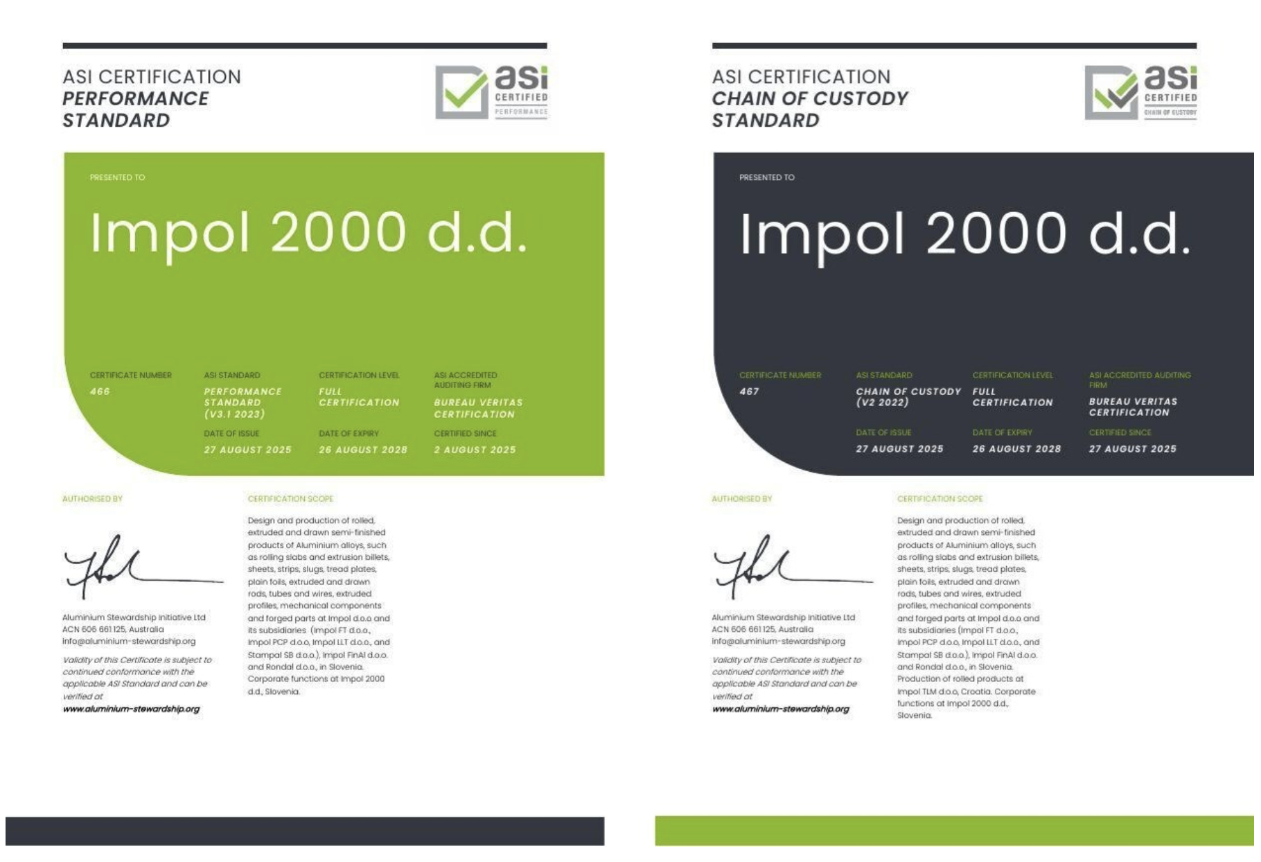 The Impol Group has taken an important step forward in its sustainability journey — we have obtained two international certifications from the Aluminium Stewardship Initiative (ASI): the Performance Standard and the Chain of Custody Standard.
